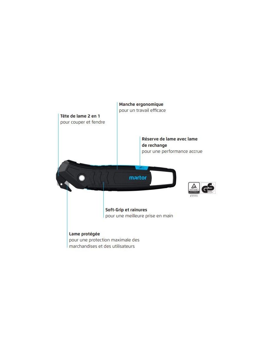 La lame protégée vous apporte une sécurité maximale contre les blessures par coupure, et elle n‘entre jamais en contact avec vos marchandises.