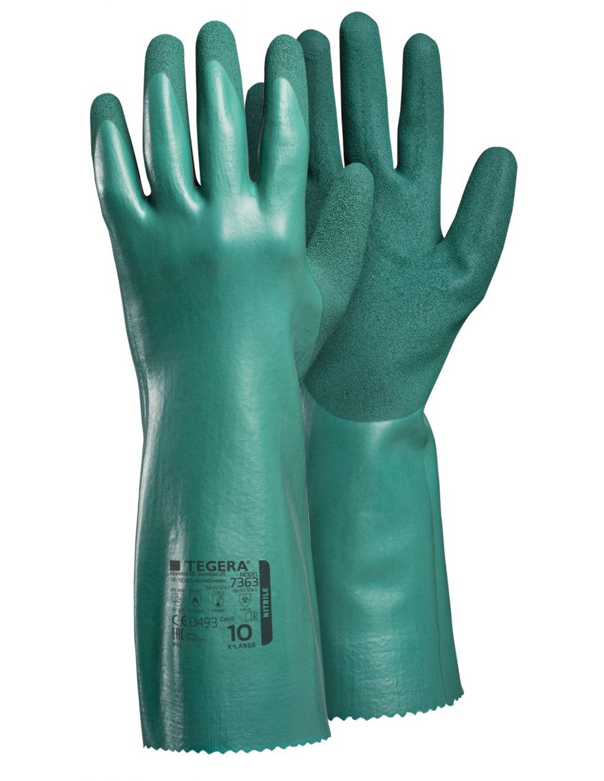 Découvrez les gants de protection chimique anti-coupure 7363 de Ejendals. 3 protections pour un seul gant : contre les produits chimiques, les coupures et la chaleur. Fabriqués en nitrile de 0,3 mm, ils sont imperméables, antidérapants et résistants aux huiles et graisses. Leur doublure confortable assure un port agréable. Certifiés Oeko-Tex, ils sont sans phtalates ni latex. Jauge 18, certifié également en contact alimentaire à l’exception des aliments gras. Uniquement pour usage CYCLAVET / DASRI )