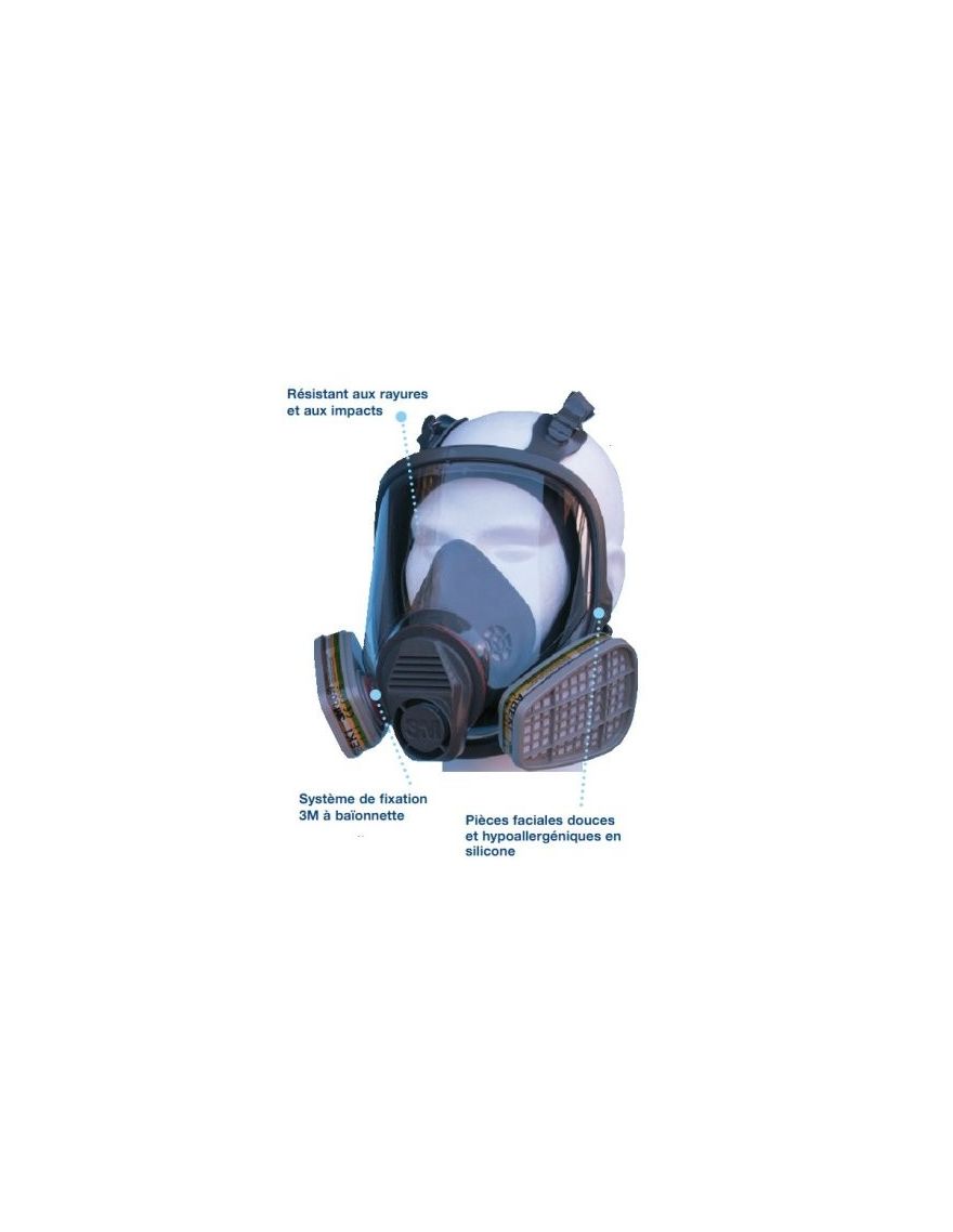 Masque Complet 3M 6800, à double filtres permet un haut niveau de filtration. Pièce faciale en élastomère souple garantit un ajustement et un confort, tout en réduisant la pression sur le visage.
